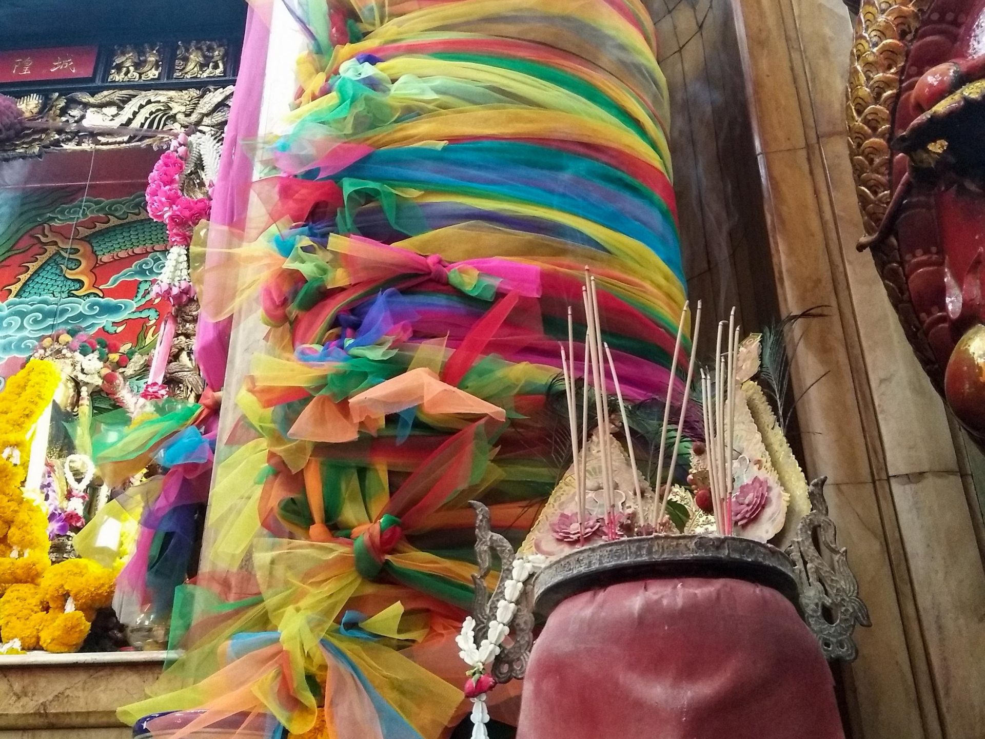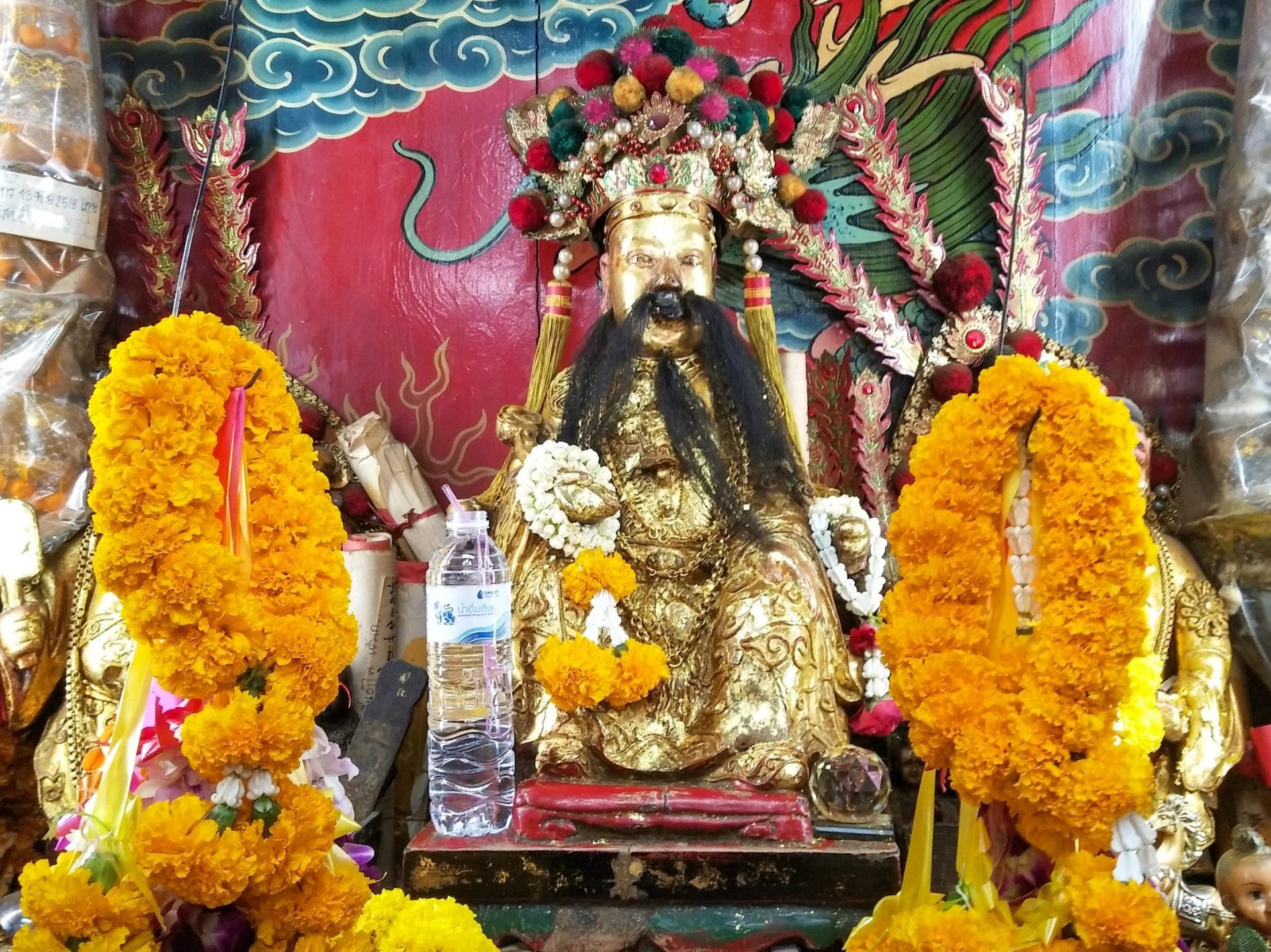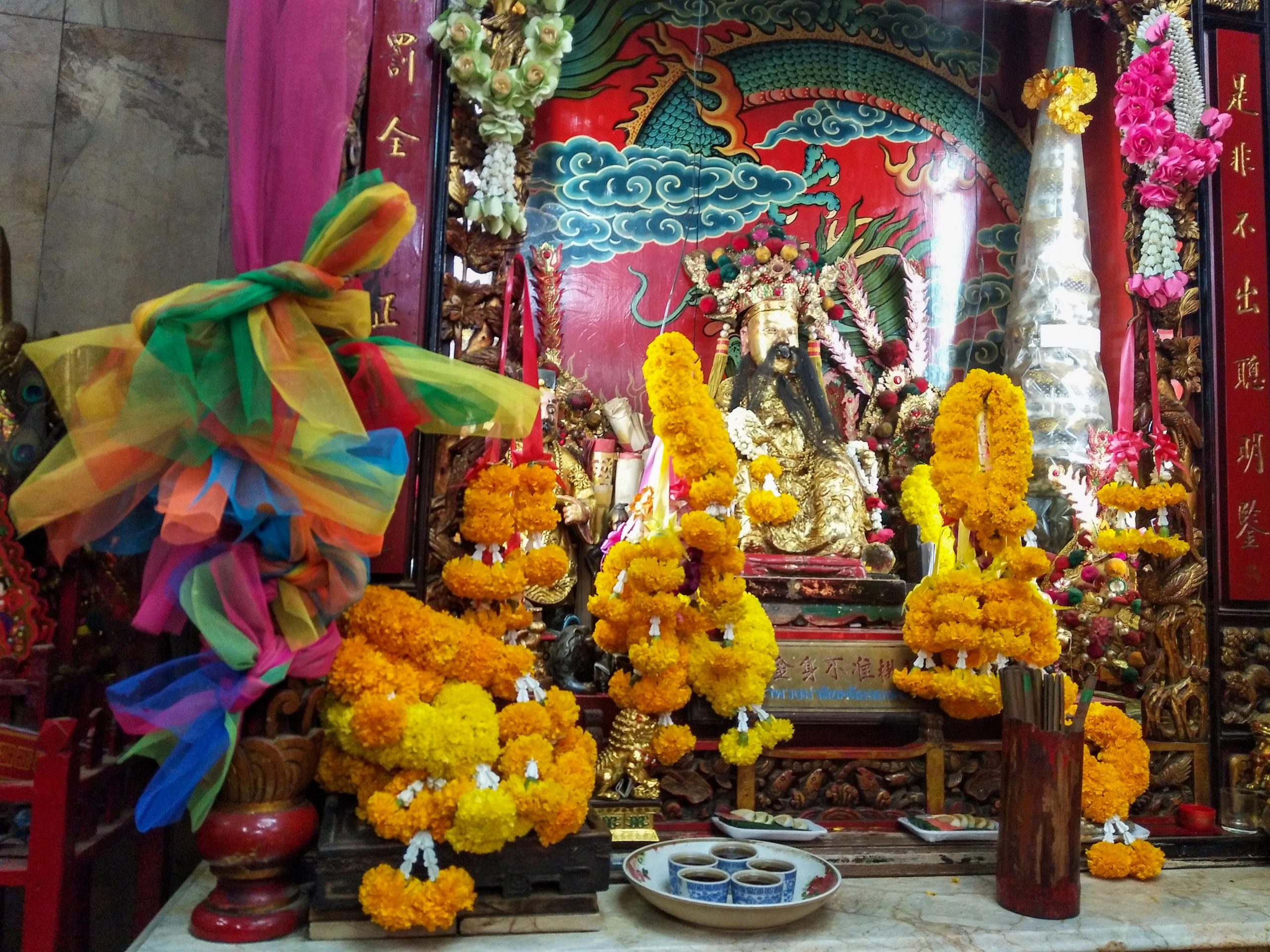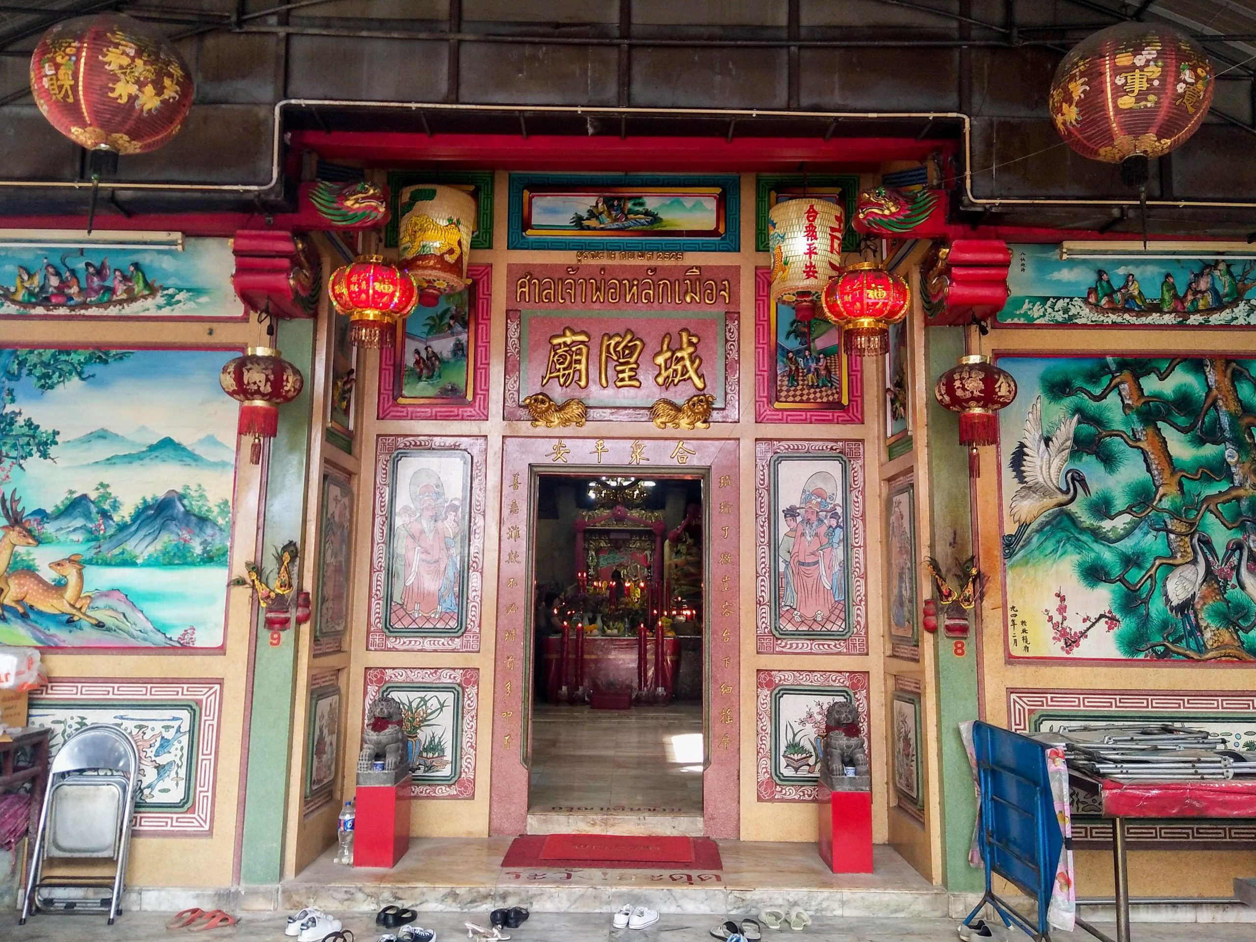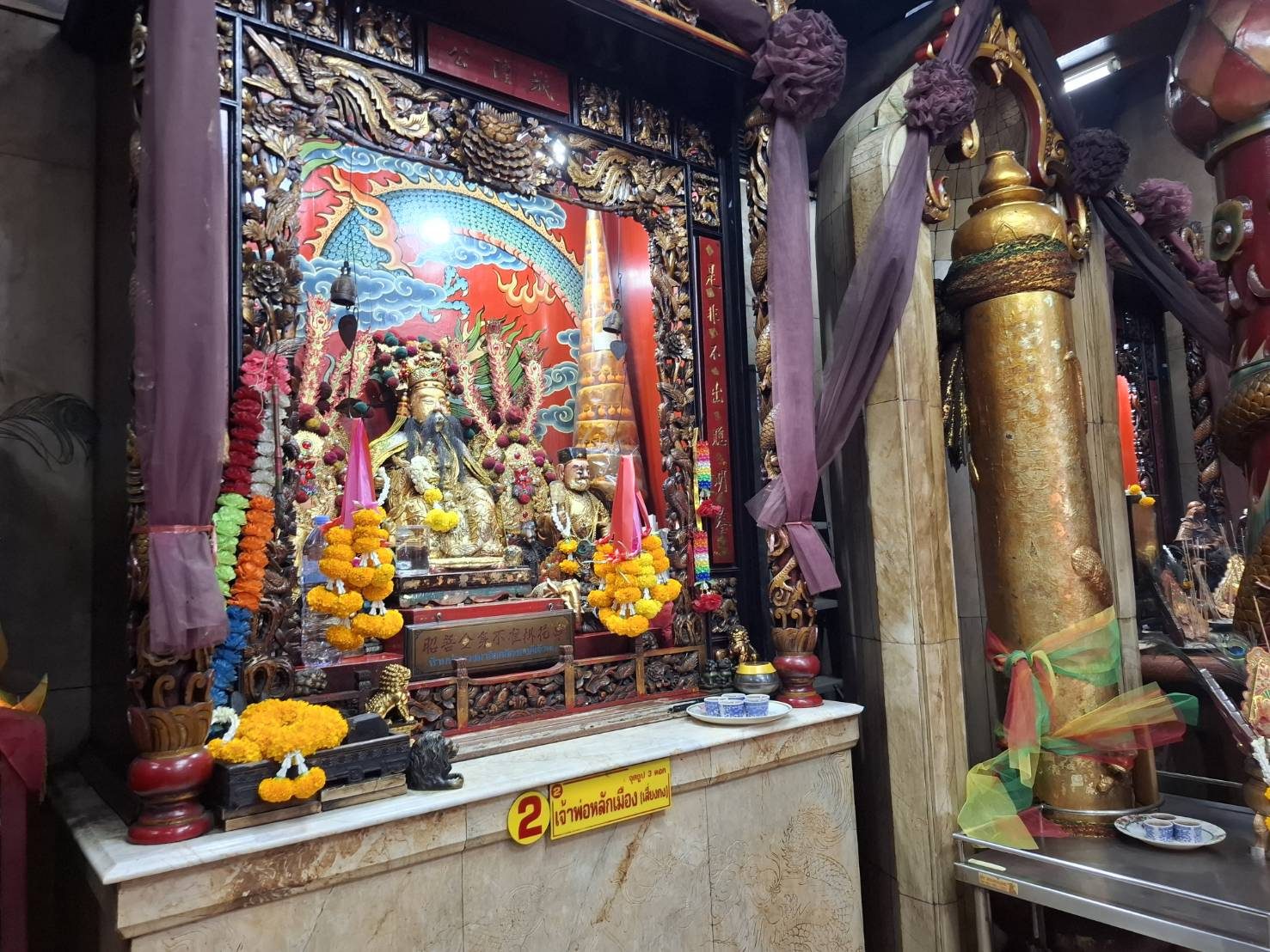 เป็นศาลเจ้าพ่อหลักเมืองที่มีสถาปัตยกรรมแบบจีน เดิมเป็นอาคารทรงไทย แต่ด้วยความที่ศาลหลักเมืองสร้างมานานเกือบ 200 ปี ประกอบกับทำด้วยไม้สภาพจึงชำรุดทรุดโทรมไปตามกาลเวลา ต่อมาเมื่อวันที่ 18 กันยายน พ.ศ. 2529 ได้ทำการบูรณะเปลี่ยนรูปแบบใหม่มาเป็นศาลหลักเมืองแบบศาลเจ้าพ่อจีน ด้วยสาเหตุที่บริเวณชุมชนแห่งนี้มีชาวจีนเข้ามาตั้งรกรากค้าขาย และเป็นกุลีมาเป็นเวลาช้านาน ภายในศาลเจ้าพ่อหลักเมืองสมุทรปรการประกอบด้วยสิ่งสำคัญสองอย่าง คือ 1.เจ้าพ่อ (เทพเฉิงหวง) ในศาลหลักเมืองสมุทรปราการ (ปากน้ำ) มีลักษณะเป็นขุนนางจีนโบราณแต่งเครื่องแบบเต็มยศ สวมหมวกนั่งอยู่บนเก้าอี้ ขนาบข้างด้วยบริวารข้างละคน ตั้งอยู่ในซุ้มบูชากลางศาลเจ้า บริเวณปากของเจ้าพ่อศาลหลักเมืองเปื้อนฝิ่นสีดำเป็นมัน เนื่องจากชาวบ้านบางคนนิยมเซ่นไหว้บูชาเจ้าพ่อศาลหลักเมืองด้วยฝิ่น บริเวณโดยรอบศาลเจ้าพ่อหลักเมืองเป็นถิ่นที่อยู่อาศัยของชาวไทยเชื้อสายจีน และเคยมีโรงยาฝิ่นอยู่บริเวณข้างศาลเจ้าพ่อหลักเมือง ซึ่งแต่เดิมนั้นทางการไทยยอมให้ชาวจีนสูบฝิ่นและตั้งโรงยาฝิ่นได้โดยไม่ถือว่าผิดกฎหมายแต่อย่างใด 2.เสาหลักเมืองสมุทรปราการ ตั้งอยู่เยื้องซ้ายที่ประทับของเจ้าพ่อหลักเมือง เป็นไม้กลมความสูงประมาณ 6 ศอกเศษ ส่วนยอดบนของเสาหลักเมืองกลึงเป็นดุมลดหลั่น ยอดเป็นพุ่มแหลมอย่างไทยแต่แกะสลักเป็นมังกรปีนเสาหลักเมืองขึ้นไป ลักษณะของมังกรมีเกล็ดขาแบบจระเข้ มีผ้าเจ็ดสีพันอยู่บริเวณโดยรอบของเสา มีซุ้มโค้งโอบครึ่งเสาเปิดด้านหน้า เป็นการแต่งเติมเสาหลักเมืองตามความเคารพศรัทธาของชาวไทยเชื้อสายจีน แห่งเมืองสมุทรปราการ (ปากน้ำ) เวลาเปิด-ปิด 05.00-19.00 น.