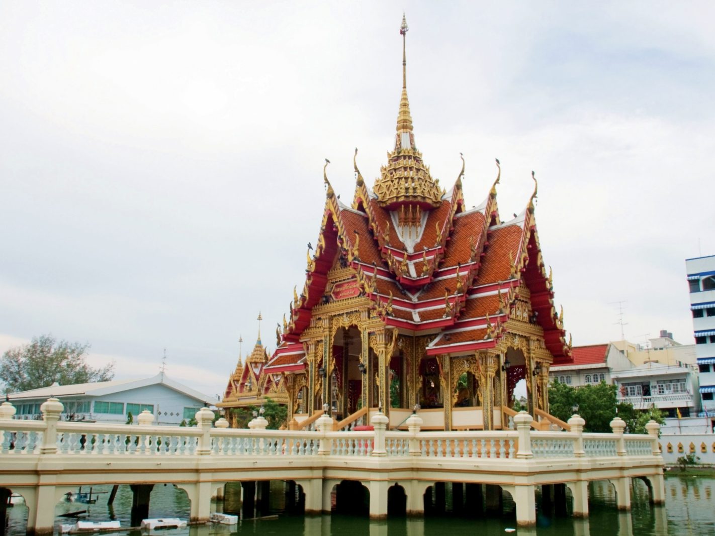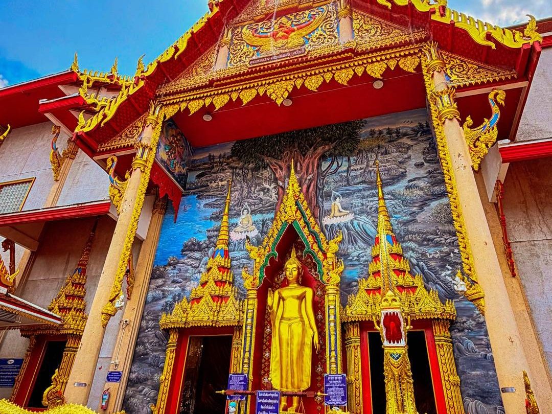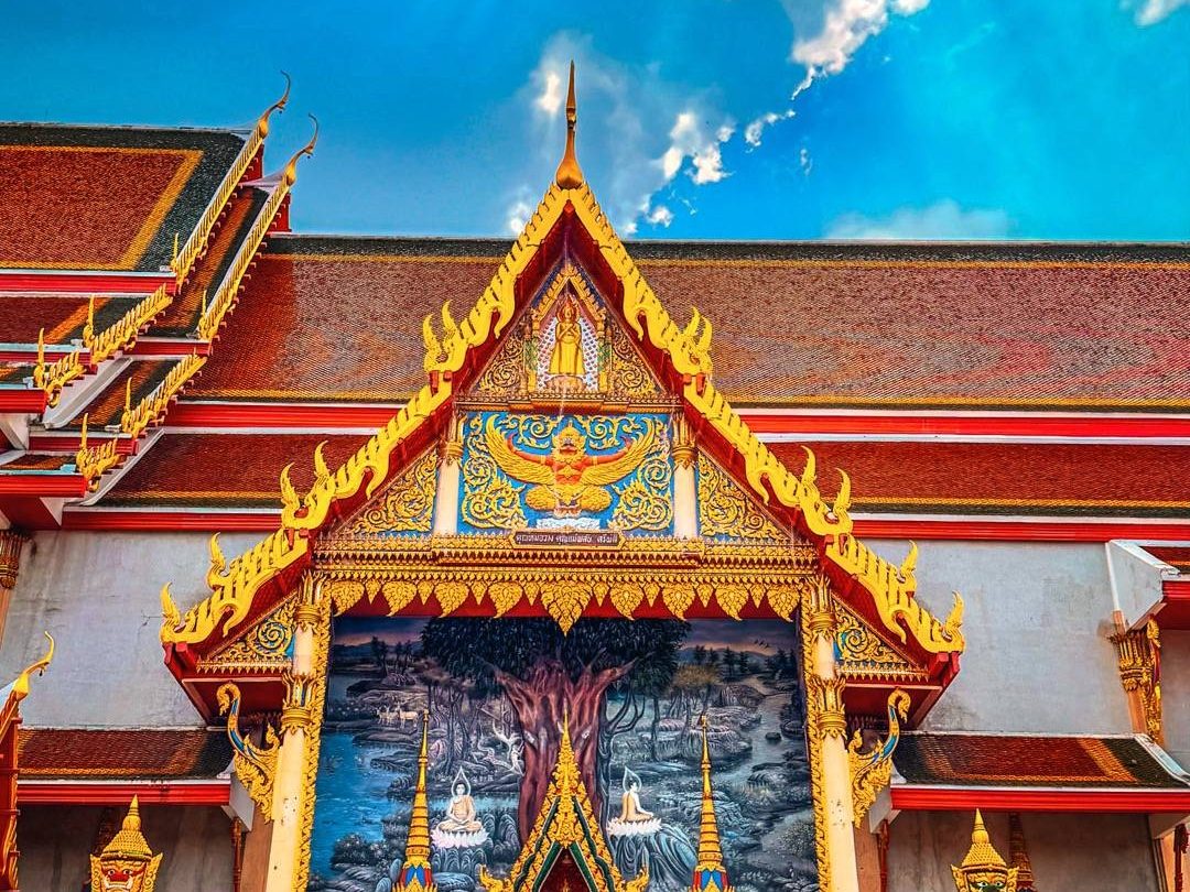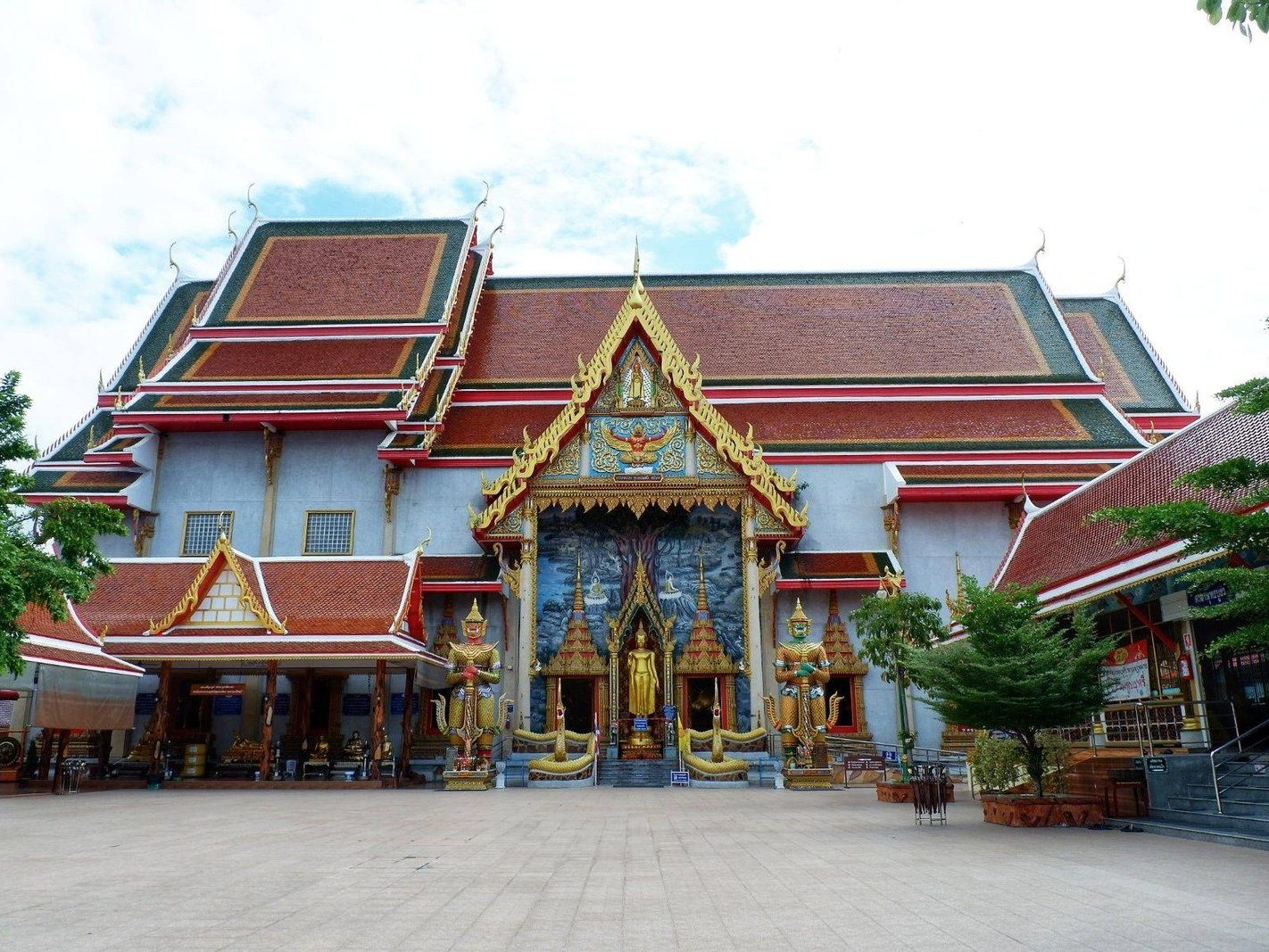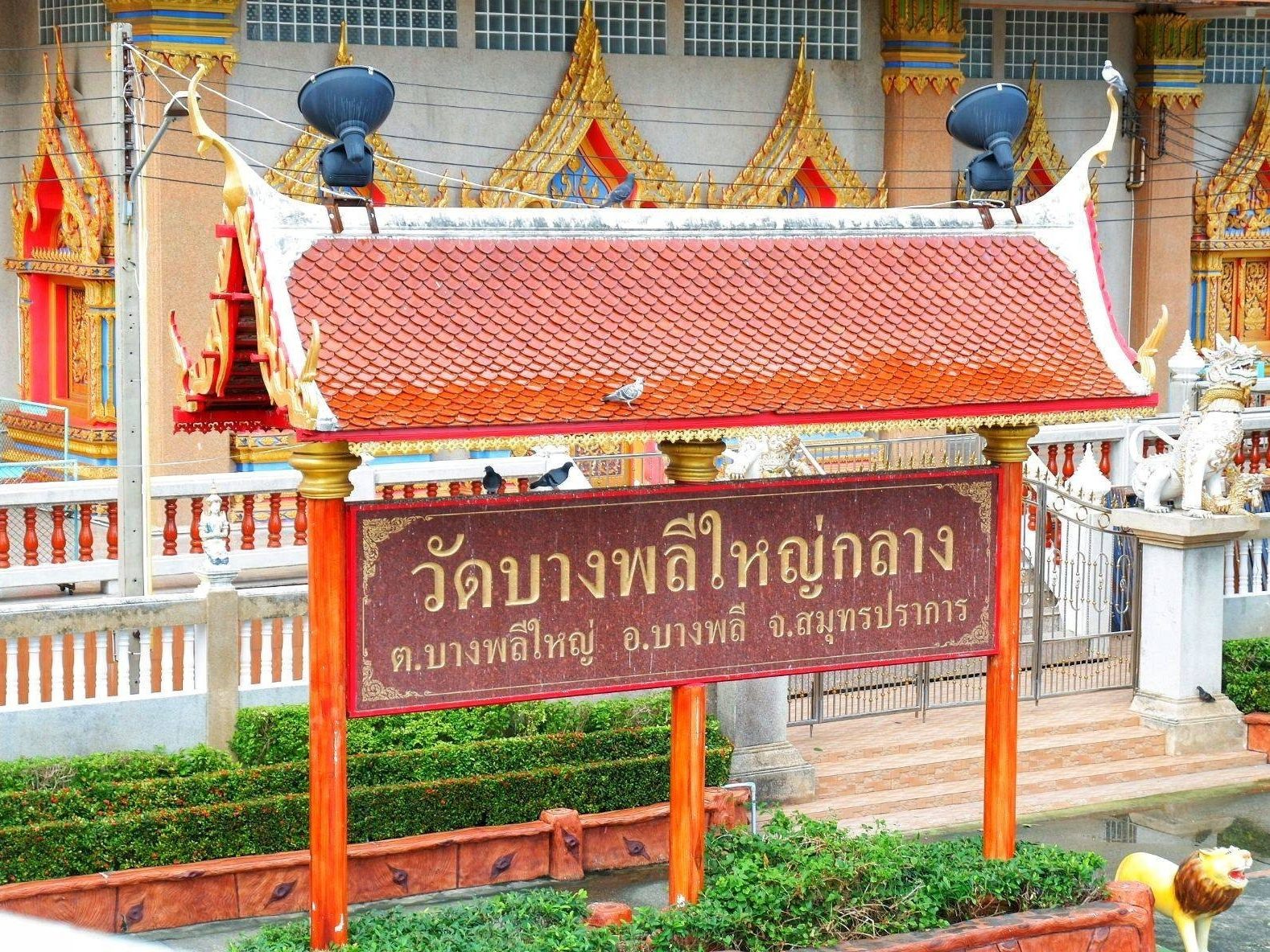 วัดบางพลีใหญ่กลางเป็นที่ประดิษฐานสมเด็จพระศากยมุณีศรีสุเมธบพิตร พระพุทธรูปปางไสยาสน์ที่ใหญ่ที่สุดในประเทศไทย ยาวประมาณ 53 เมตร แล้วสร้างพระวิหารคลุมทีหลัง ความสูงของวิหารเท่าอาคาร 4 ชั้น ภายในองค์พระใหญ่พอที่จะแบ่งให้มีห้องปฏิบัติธรรม เสาและผนัง มีภาพเขียนเรื่องราวของเทวดา นรก สวรรค์ คติธรรม จำนวนมากมาย กว่า 100 รูป และมีห้องหัวใจพระซึ่งประชาชนนิยมมาปิดทองเพื่อเป็นศิริมงคล